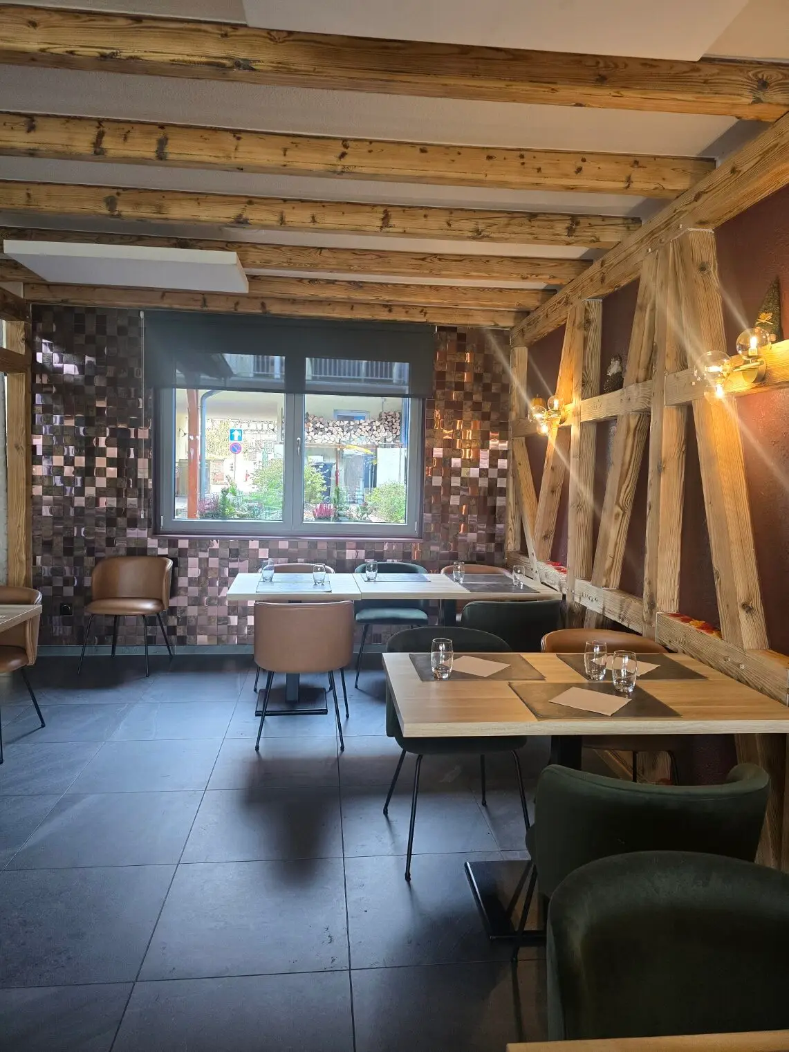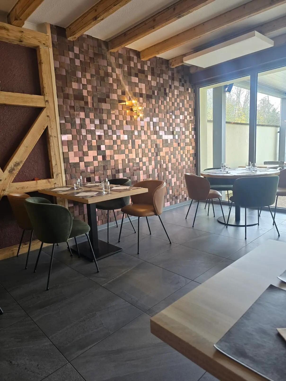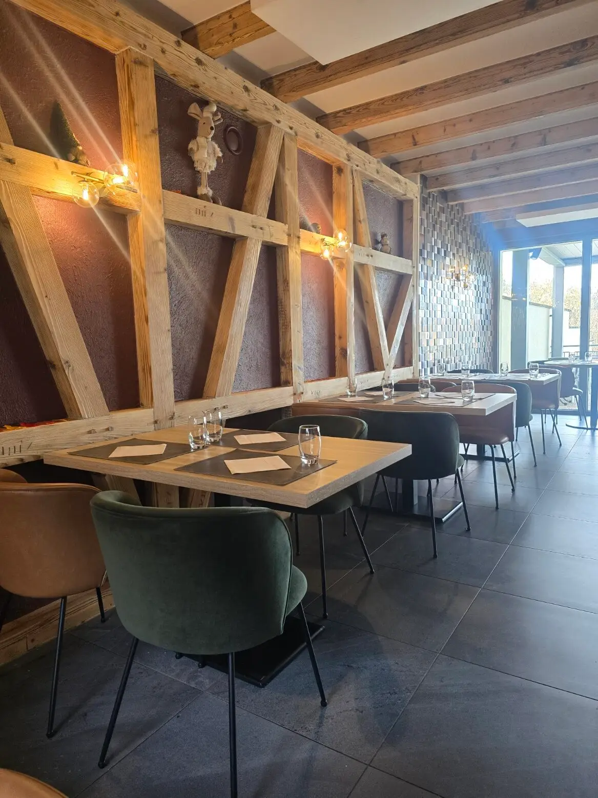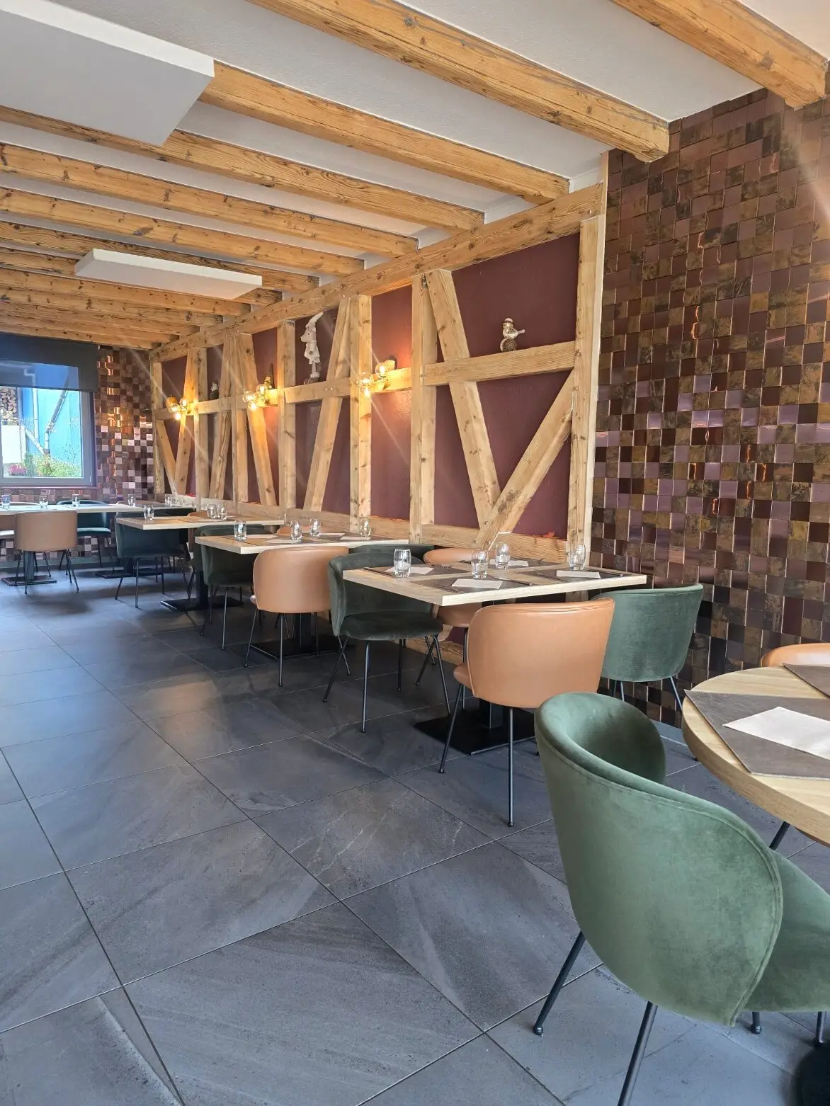 Nous avons donc travaillé une atmosphère plus conviviale, une palette de couleurs naturelles, un éclairage plus doux et dynamique, ainsi que quelques touches de matières brutes.